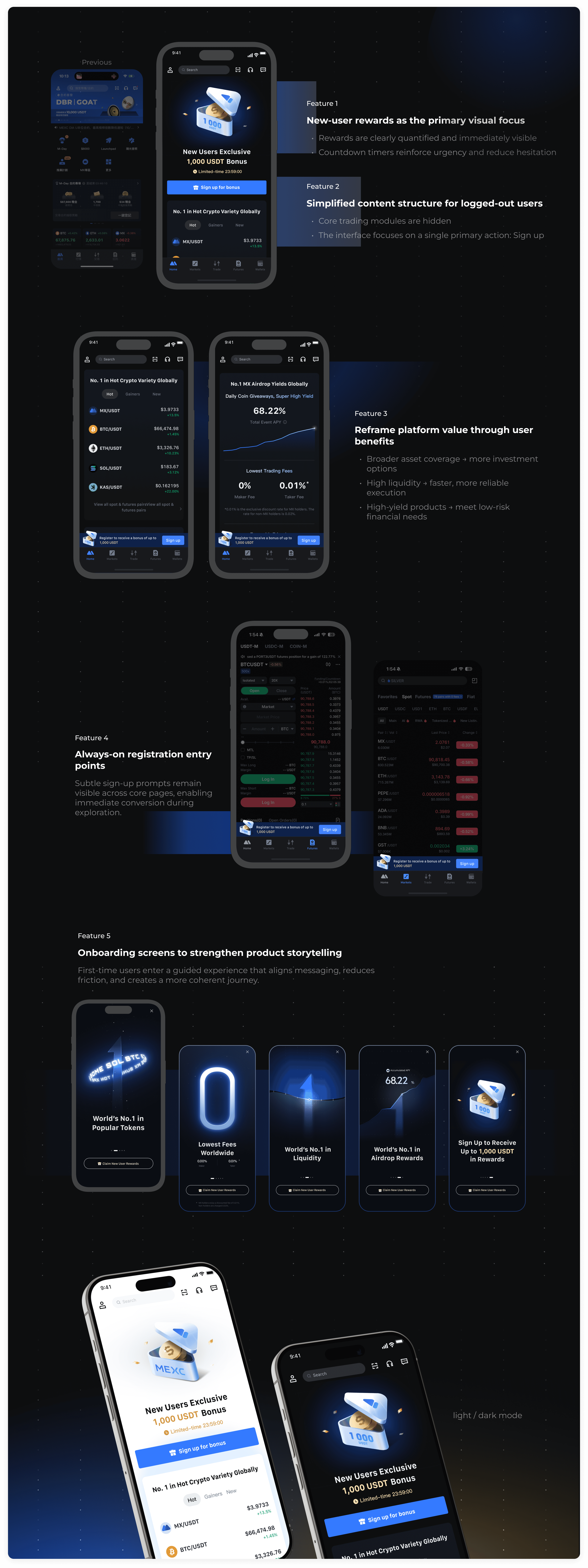 We looked at what happens before sign-up—when visitors are still deciding whether this platform is worth the commitment. The focus was to reduce hesitation at key entry points and help visitors feel ready to register, rather than pushing them to act.