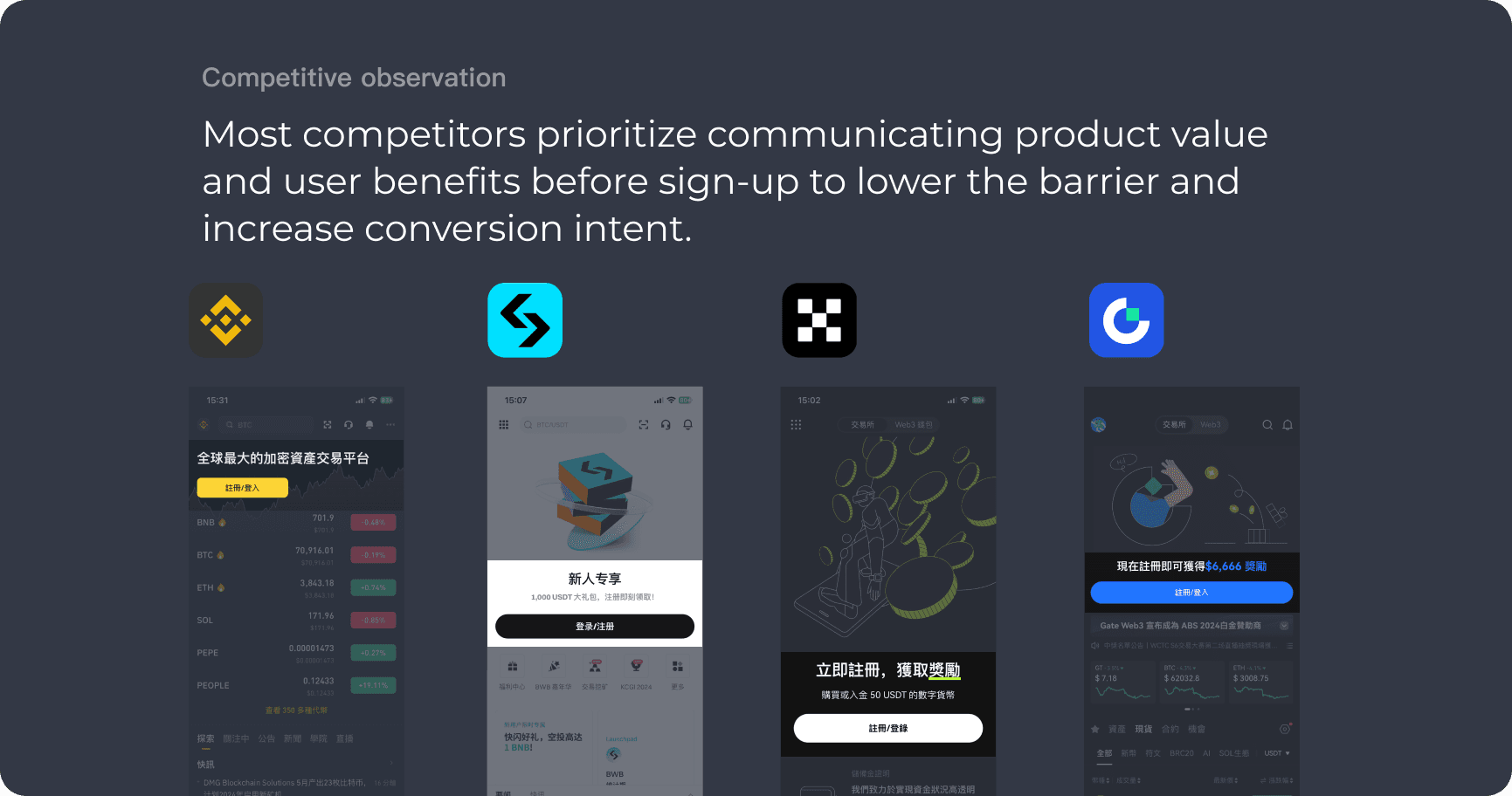 Before sign-up, visitors respond to benefits more than feature depth. They want a quick reason to register, not a full tour.